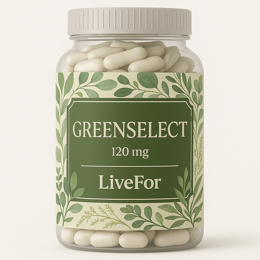 ## **LIVE FOR GreenSelect Phytosome® – Termogênico inteligente, performance sem agitação.** O seu corpo pronto para queimar mais, com equilíbrio e ciência. **LIVE FOR GreenSelect Phytosome®** é uma inovação no controle de peso e na melhora do metabolismo, com um poderoso extrato purificado de catequinas (60%), enriquecido com **galato de epigalocatequina (EGCG – 40%)**, formulado com tecnologia **phytosome** para **absorção máxima e eficácia comprovada**. --- ### 🔥 **Ação termogênica sem cafeína, sem efeitos colaterais** Diferente dos termogênicos comuns que atuam estimulando o sistema nervoso central, GreenSelect Phytosome® oferece **aceleração do metabolismo e queima de gordura real**, **sem causar agitação, taquicardia ou irritabilidade**. É ideal para quem quer **reduzir medidas, controlar o peso e otimizar a queima calórica** com segurança, foco e tranquilidade. A tecnologia phytosome potencializa a biodisponibilidade dos ativos, garantindo **resultados superiores com menor dosagem**. --- ### 💚 **Benefícios de LIVE FOR GreenSelect Phytosome®** - ✅ **Ação termogênica sem cafeína** - ✅ **Aumenta a queima calórica e a oxidação de gorduras** - ✅ **Favorece a redução e o controle de peso corporal** - ✅ **Melhora o perfil lipídico: reduz colesterol e triglicerídeos** - ✅ **Não estimula o sistema nervoso – livre de efeitos colaterais** - ✅ **Alta absorção com tecnologia Phytosome** --- ### 📦 **Posologia recomendada** Tomar **1 cápsula 30 minutos antes do café da manhã e do almoço**, ou conforme orientação profissional. --- ### 🛡️ **Composição ativa** **GreenSelect Phytosome® (Catequinas 60% + EGCG 40%) – Desacafeinado.** --- ### ⚠️ **Cuidados e advertências** - Venda sob prescrição de profissional habilitado (conforme Resolução 586/2013 – CFF). - Produto de uso adulto. Não recomendado para gestantes ou lactantes sem orientação médica. - Manter fora do alcance de crianças. - Armazenar em local seco, fresco e protegido da luz. - A eficácia está ligada ao uso correto e à individualidade de cada organismo. - “**AO PERSISTIREM OS SINTOMAS, O MÉDICO DEVERÁ SER CONSULTADO.**” --- ## **LIVE FOR GreenSelect Phytosome® – Queima inteligente. Resultados reais. Sem agitação.** **Viva o equilíbrio entre performance, bem-estar e ciência. Viva leve. Viva forte. LIVE FOR.**